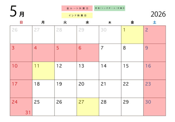■香港発送休業日(時期によりシンガポールまたは台湾) 2月17日(火)~19日(木)旧正月および土日祝